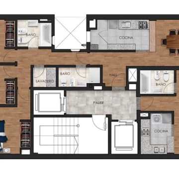 - Pisos y revestimientos de porcelanato de primera linea en cocinas, baños y espacios comunes.