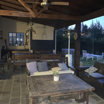 Galeria - parrilla - pileta de natacion con filtro - doble cochera semicubierta - Pisos de porcellanato en recepcion y de madera en los dormitorios - aberturas de PVC color madera - Caldera y radiadores - aire acondicionados en todos los ambientes - termotanque - Techos de teja exteriores y cielo raso interior - tanque de agua y bomba presurisadora- posee todos los servicios - internet por fibra optica. Es una casa super completa y equipada para familia numerosa o personas que deseen vivir y trabajar en un ambiente natural con vista a cancha de golf y cercano a todos los accesos